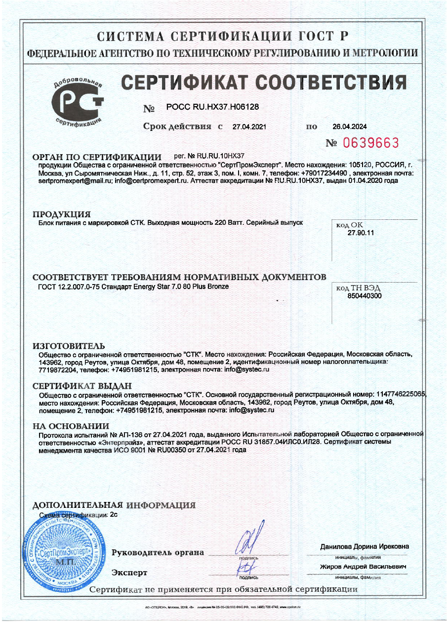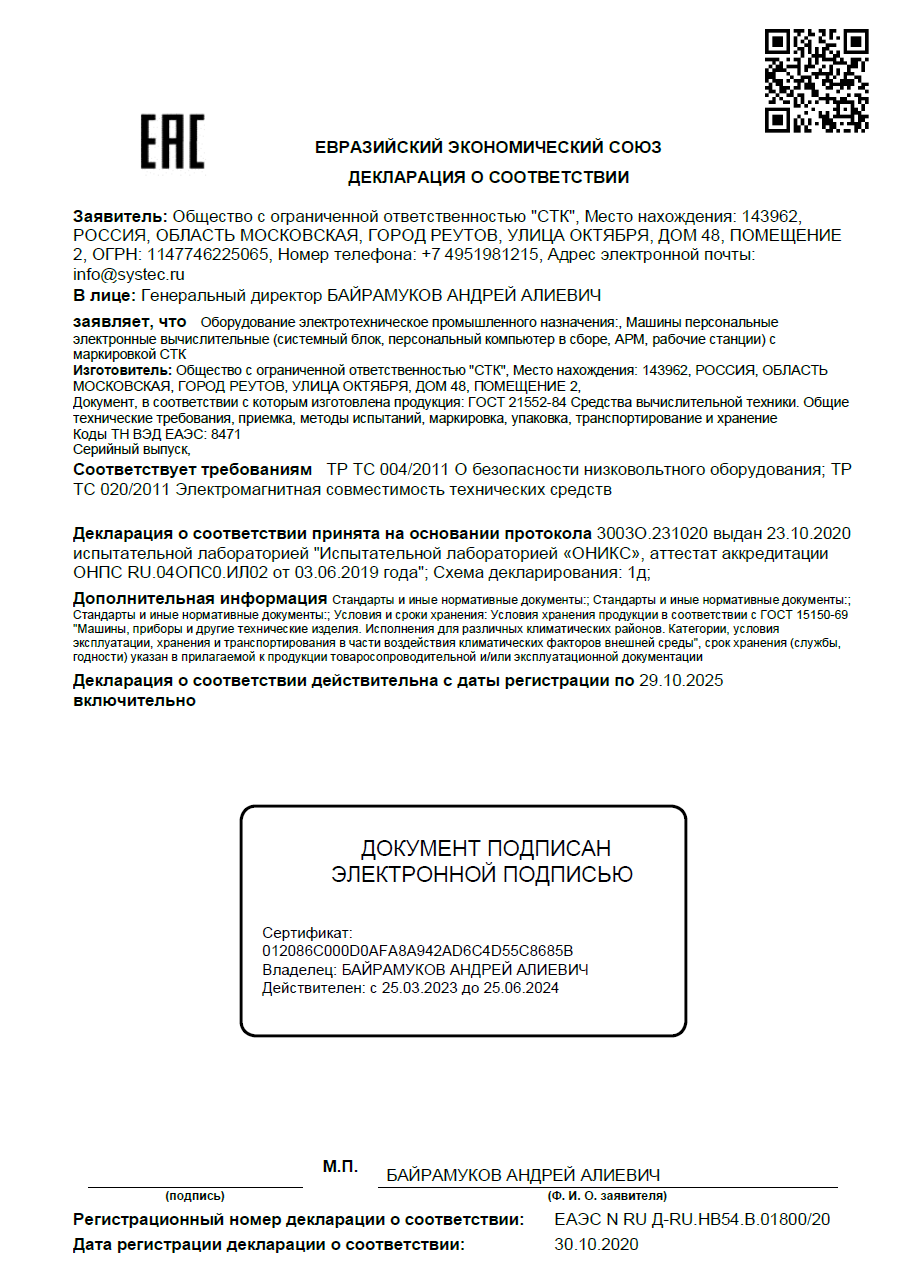 Декларация о соответствии на компьютеры СТК